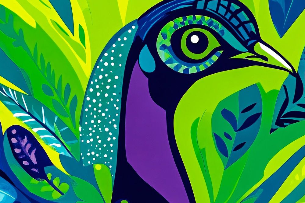 Ce motif apporte une explosion de couleurs et de vie dans n'importe quelle pièce. Avec une représentation surréaliste d'un paon entouré de feuilles vertes et bleues vibrantes, il crée un point focal saisissant dans votre intérieur. Parfait pour les amateurs d'art moderne et de nature, cet imprimé ajoute du dynamisme et de l'énergie à n'importe quelle pièce, du salon au couloir. Laissez-vous séduire par la richesse des détails et l'harmonie des couleurs qui vous feront découvrir quelque chose de nouveau à chaque fois.