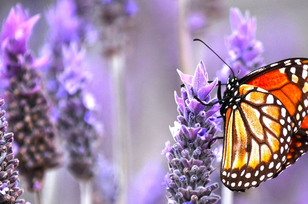 Un joli papillon accroché à une lavande, dans un champ de lavandes à Salta, ville du nord de l'Argentine. La fraîcheur est présente dans cette image qui nous transmets aussi les couleurs du printemps. Photographie de nature, très esthétique et apaisante.