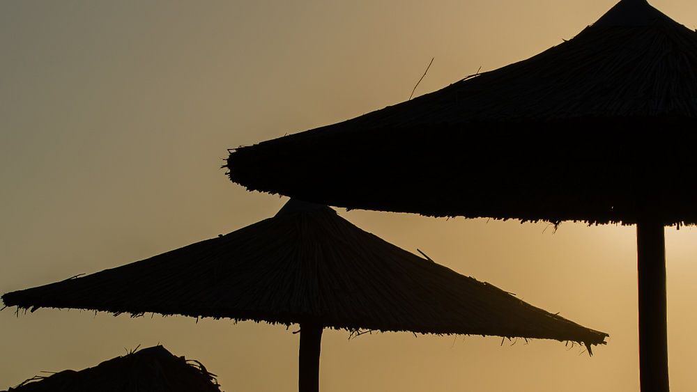Achetez cette photo Parasols à la lumière du soir par Rinus Lasschuyt Fotografie sur toile, aluminium, ArtFrame ou photographie (encadrée), impression d'art en haute qualité et tout format.