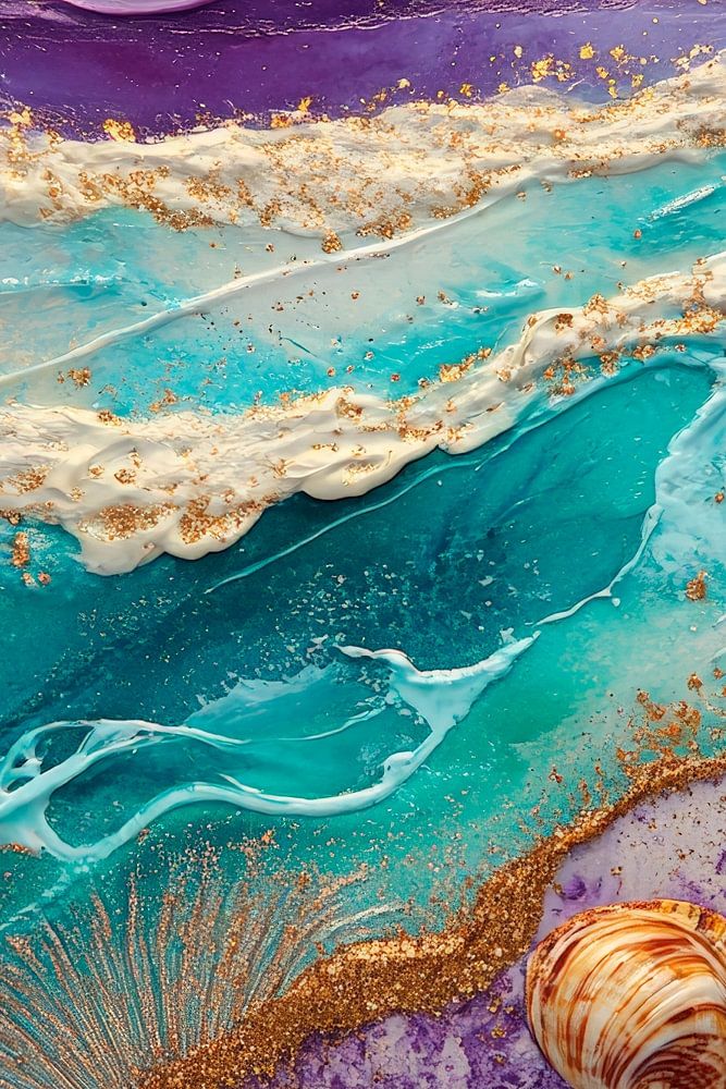 Dans de douces nuances de bleu et d'or scintillant se déploie un paysage de rêve qui transporte l'esprit vers des plages infinies et le doux bruit de la mer. Les coquillages scintillants dégagent une élégance maritime, tandis que les couleurs évoquent de vifs souvenirs des jours d'été. Idéale pour un salon, cette œuvre d'art crée une atmosphère relaxante et accueillante.