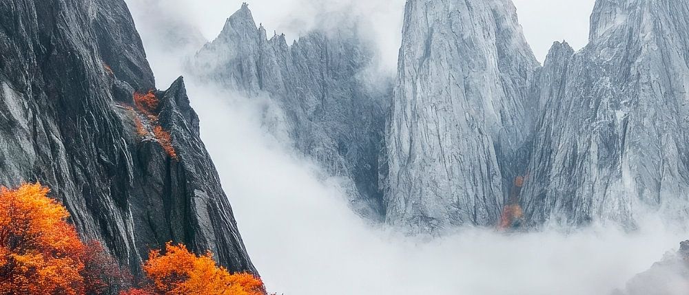 Un panorama de montagnes majestueuses, enveloppé d'un brouillard mystique, transmet une merveilleuse sérénité. Les tons lumineux des arbres en automne évoquent la saison chaude, tandis que les sommets escarpés dégagent une impression de force. Parfaitement adaptée au salon, cette œuvre d'art apporte un lien avec la nature et une…