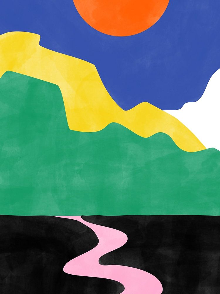 Acheter ce illustration Paysage minimaliste aux couleurs vives par Elena Ristova sur toile, aluminium, ArtFrame ou photographie (encadrée), impression d'art en haute qualité et tout format.