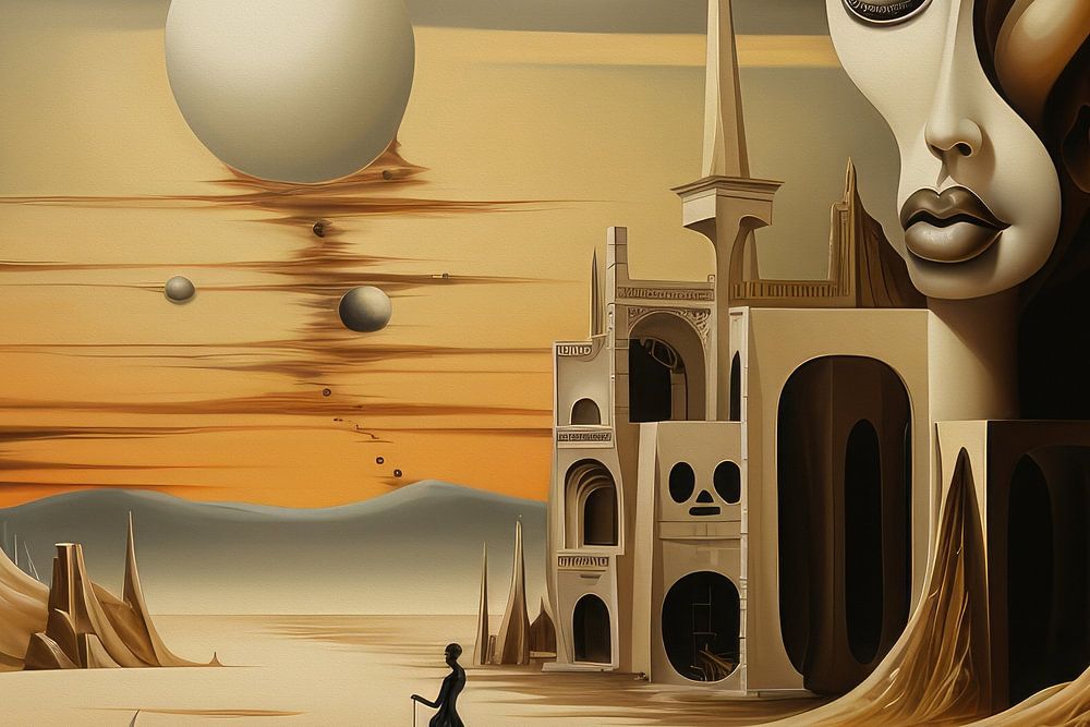 A propos de "Paysage surréaliste abstrait et bizarre avec image de femme"
