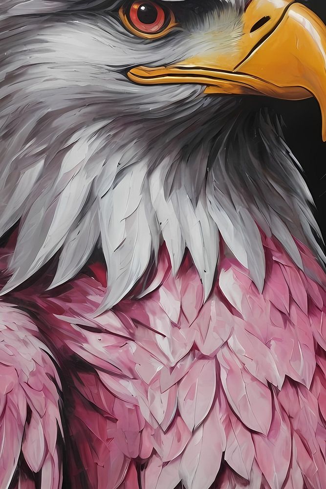 Découvrez la beauté majestueuse de cette interprétation abstraite d'un aigle, avec une explosion de teintes roses et argentées vibrantes suggérant l'énergie et le mouvement. Cette œuvre d'art moderne incarne la puissance et la grâce de cet oiseau emblématique et apporte une touche d'audace à n'importe quel espace. Ses coups de pinceau dynamiques et sa texture riche invitent le spectateur à un voyage visuel, ce qui en fait un ajout saisissant à votre salon ou à votre bureau.