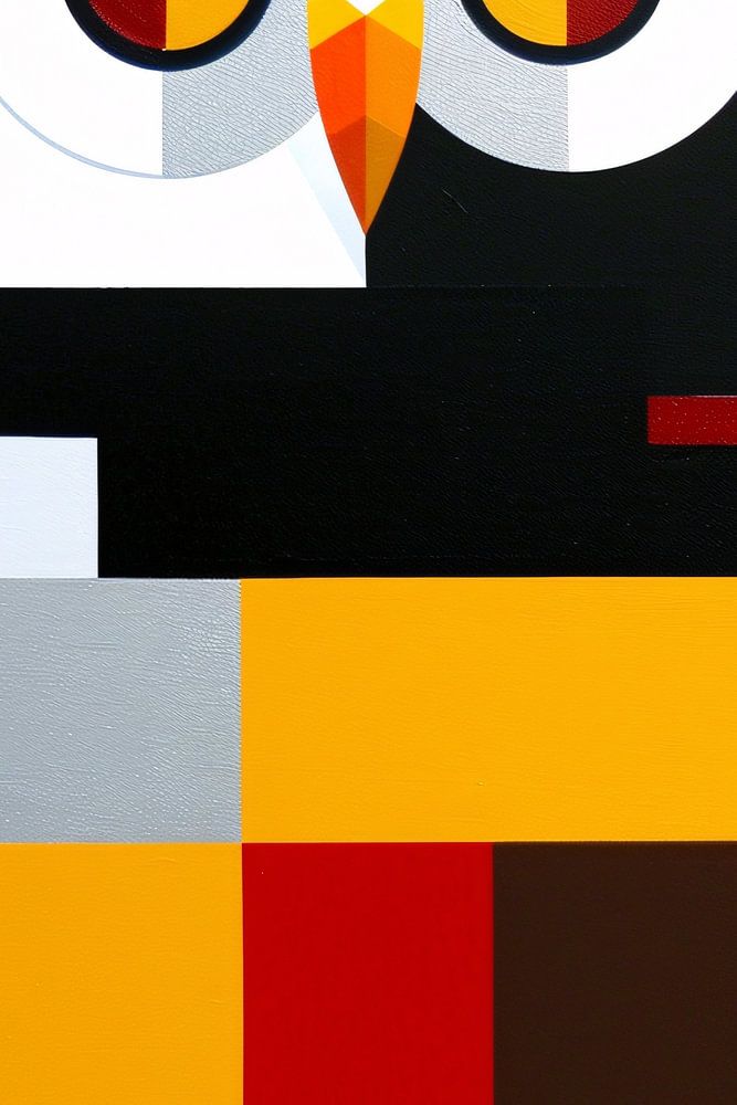 Cette magnifique peinture minimaliste d'un hibou combine des couleurs vives et des formes géométriques pour créer une œuvre d'art unique et accrocheuse. Parfaite pour les intérieurs modernes, cette œuvre d'art ajoute une touche d'espièglerie et de sophistication à n'importe quelle pièce. Ses lignes épurées et l'utilisation de couleurs contrastées telles que le jaune, le rouge, le noir et le blanc en font un choix idéal pour les amateurs d'art abstrait et d'animaux. Accrochez-le dans votre bureau pour créer un environnement inspirant ou dans la chambre à coucher pour une atmosphère calme mais vibrante. Cette peinture est un must pour tout amateur d'art à la recherche de quelque chose d'unique et de contemporain.