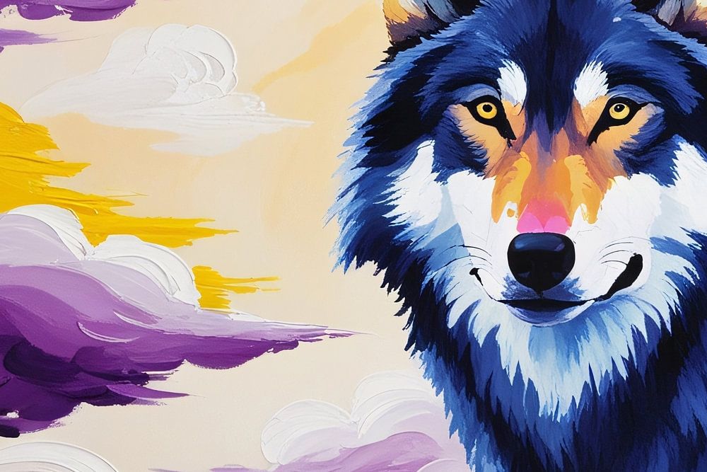 Cette œuvre d'art unique représente un loup majestueux sur un fond de nuages dynamiques violets et jaunes. Le dessin combine des couleurs vives et des coups de pinceau audacieux, créant un effet expressif impressionnant. Le loup respire la force et la sagesse, tandis que les nuages contrastés ajoutent une atmosphère de rêve. Parfaite pour les intérieurs modernes, cette peinture ajoute une touche de nature sauvage et de mysticisme à n'importe quel espace, qu'il s'agisse d'un salon, d'un bureau ou d'une chambre à coucher. L'utilisation de couleurs vives en fait une œuvre frappante qui attire l'attention et s'intègre avec force dans n'importe quel décor.