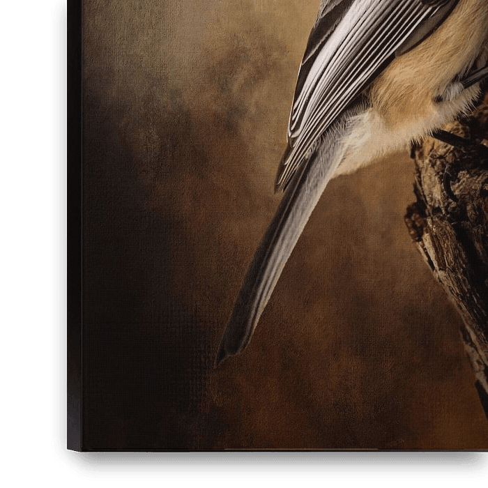 Peinture d'un oiseau avec une mésange dans un paysage marron