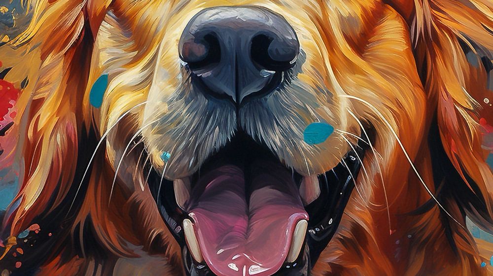 Peinture d'un visage de chien Golden Retriever avec des éclaboussures de peinture colorée