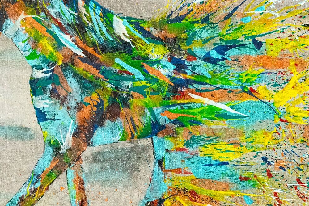peinture abstraite d'un cheval en frise peinte à la broche de licorne.