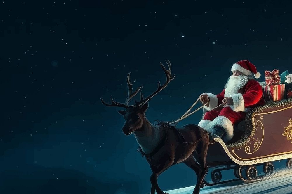 Cette œuvre montre le Père Noël en route pour distribuer des cadeaux de Noël.