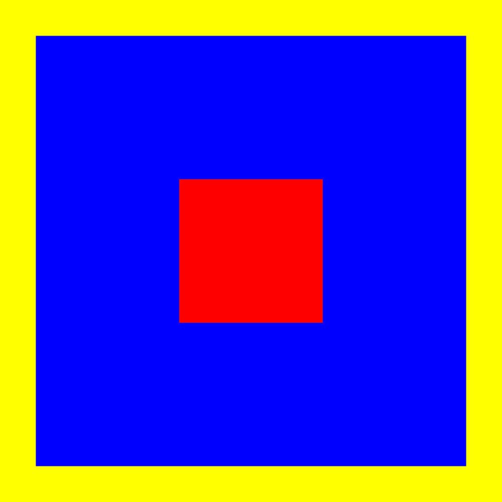 Quatre carrés, ou bandes de couleur, emboîtés les uns dans les autres.