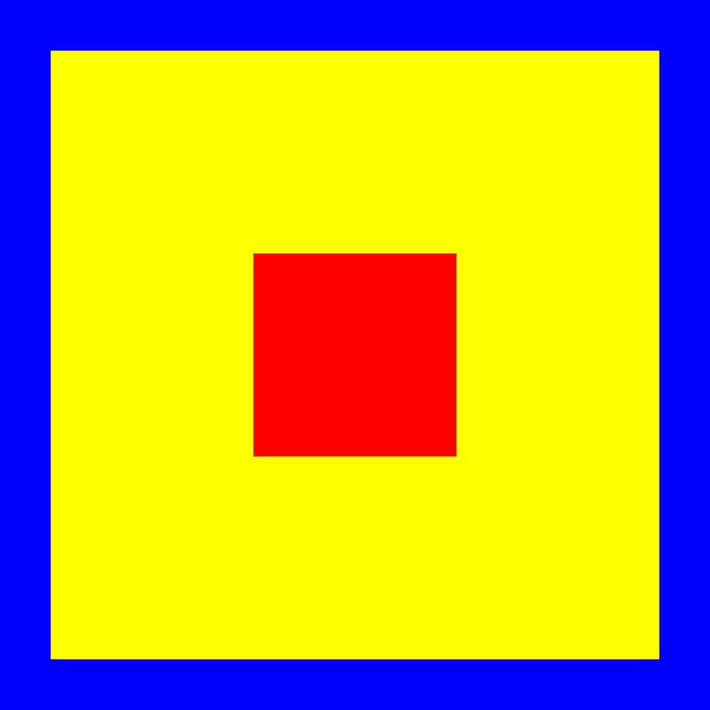 Quatre carrés, ou bandes de couleur, emboîtés les uns dans les autres.