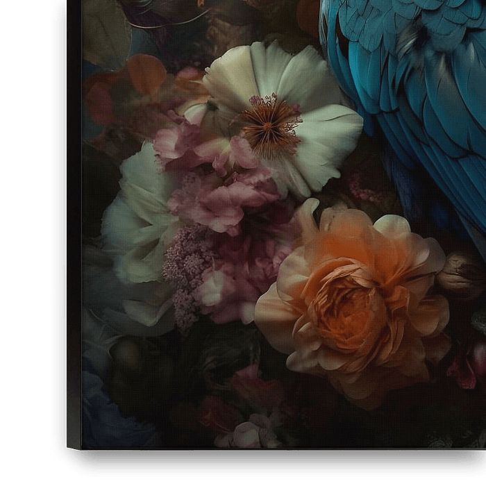 Achetez cette œuvre d'art florale Perroquet parmi les fleurs par But First Framing sur toile, aluminium, ArtFrame ou photographie (encadrée), impression d'art en haute qualité et tout format.