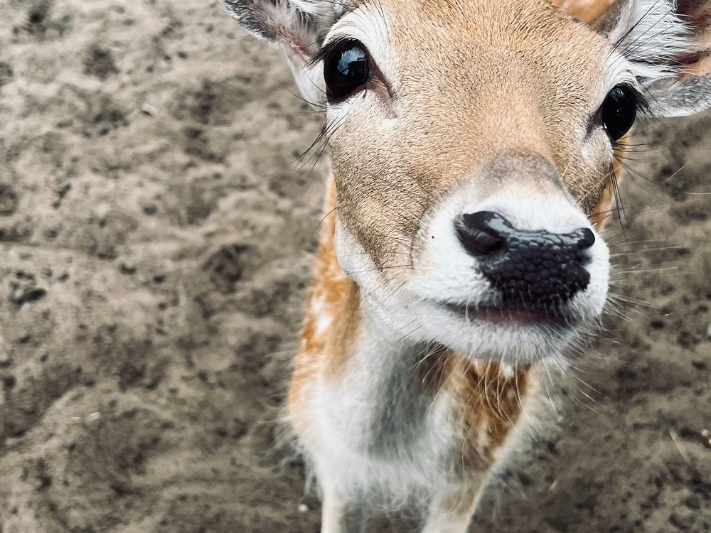 Un petit cerf curieux, à la recherche de quelques friandises dans votre poche.