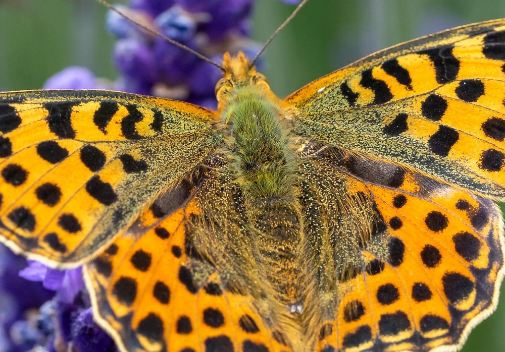 Petit nacré, (Issoria lathonia) dans un champ de lavande