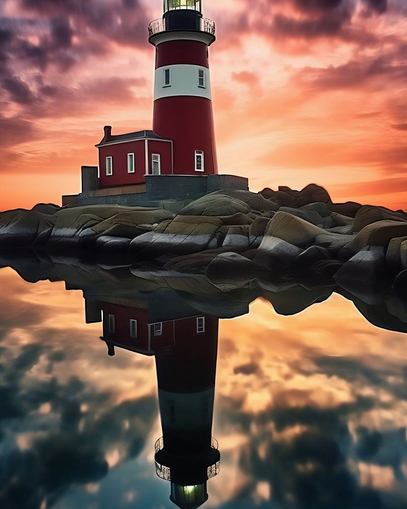 Achetez cette œuvre d'art de paysage Phare au coucher du soleil par fernlichtsicht sur toile, aluminium, ArtFrame ou photographie (encadrée), impression d'art en haute qualité et tout format.