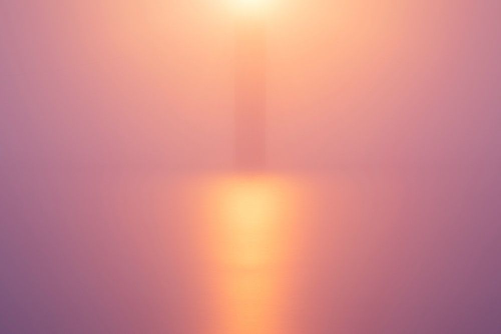 Phare ou balise en Zélande dans le brouillard. Ce phare est situé à Breskens, en Flandre zélandaise, aux Pays-Bas, dans le port du service de ferry vers Flessingue. La photo a été prise au crépuscule. Les conditions météorologiques sont très atmosphériques et l'image ressemble à une bougie dans la mer.