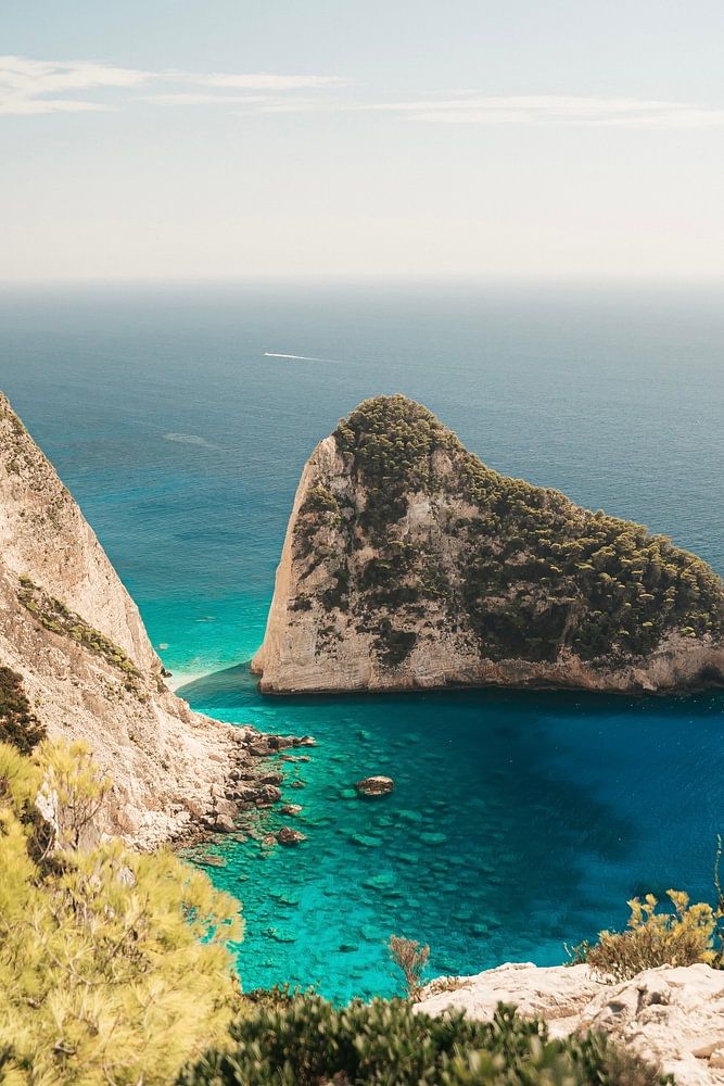 Zante, l'île qui se prête parfaitement à la découverte de toutes les plages et de toutes les falaises qu'offre l'île. Avec mon ami, nous nous sommes promenés en scooter et nous sommes tombés sur ce magnifique rocher dans les eaux azurées.