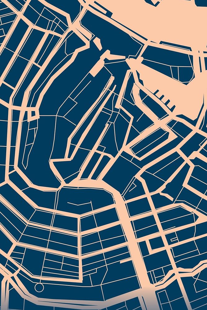Sur ce dessin, vous voyez un plan de ville du centre d'Amsterdam. Les motifs sont disponibles dans différentes couleurs, jetez un coup d'œil dans notre boutique !