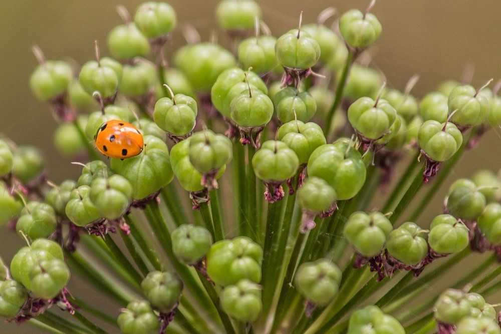 Petite coccinelle sur un poireau d'ornement