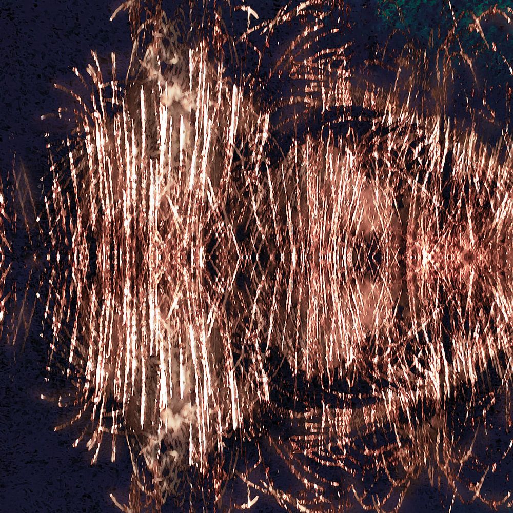 Un dessin carré utilisant la fumée et l'explosion des feux d'artifice décoratifs.