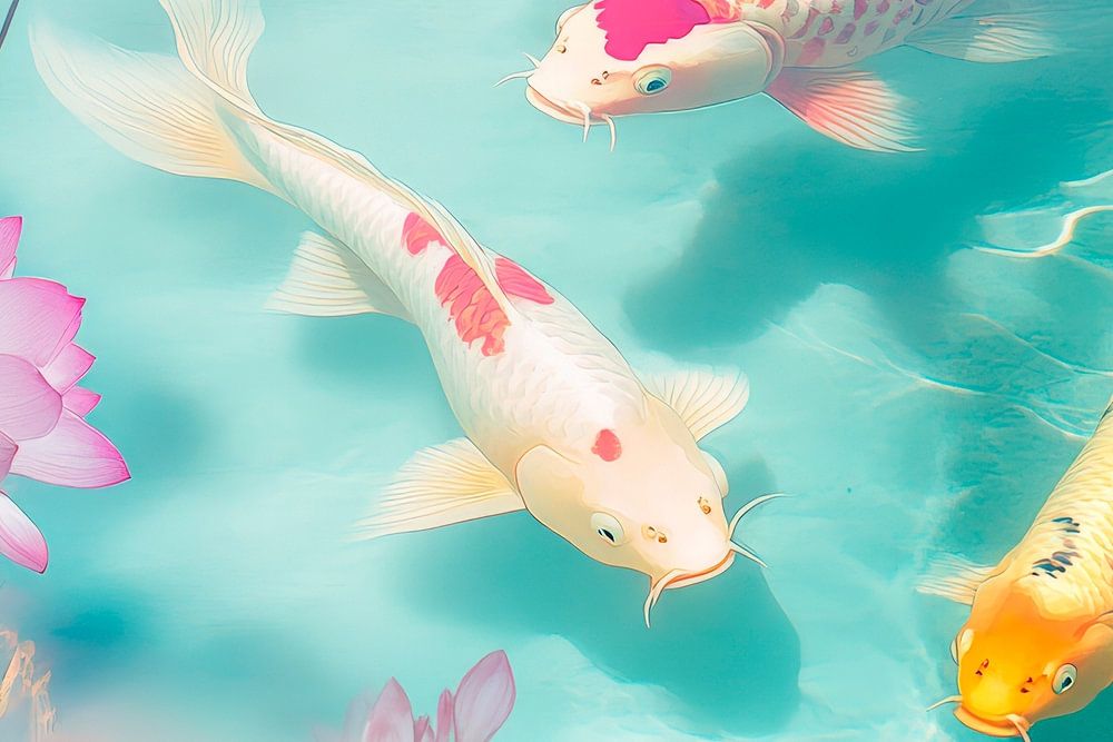 Dans un jeu apaisant de couleurs douces et d'eau courante, de magnifiques carpes koï nagent parmi de délicates fleurs de lotus. Ce décor harmonieux invite à la rêverie et confère à chaque pièce une atmosphère paisible. Idéal pour le salon ou la chambre à coucher, pour créer un havre de paix relaxant.