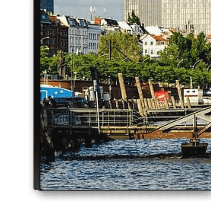 Panorama du port de Hambourg avec les cales sèches de Landungsbrücken et les grues sous un ciel nuageux