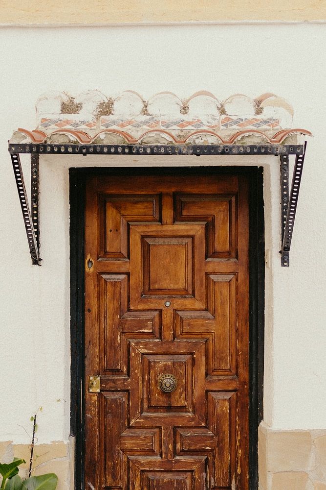 Une porte d'entrée en bois vintage tout à fait charmante à Barcelone, Bunkers del Carmel.