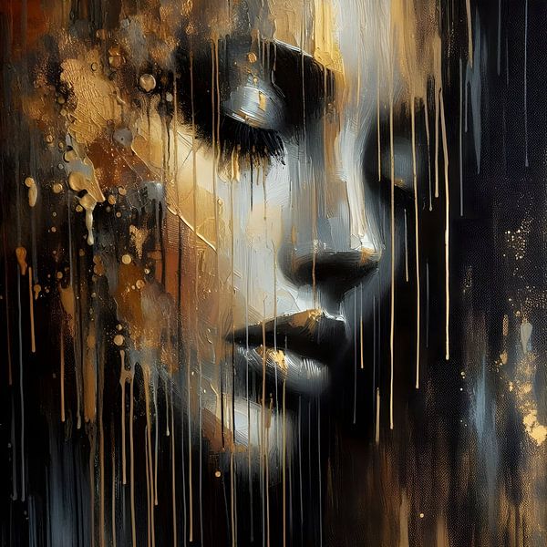 Achetez cette œuvre d'art abstraite Portrait Femme or noir par FoXo Art sur toile, aluminium, ArtFrame ou photographie (encadrée), impression d'art en haute qualité et tout format.