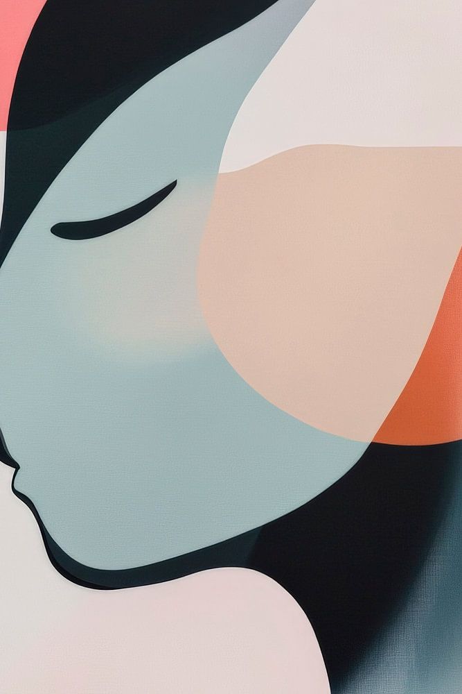 Des contours doux et des teintes douces s'unissent pour former un portrait harmonieux qui dégage un sentiment de paix intérieure et d'autoréflexion. Les formes abstraites invitent à la rêverie et créent une atmosphère créative. Parfaite pour la chambre à coucher, cette œuvre d'art favorise une ambiance détendue et inspire des pensées profondes dans une pièce calme.