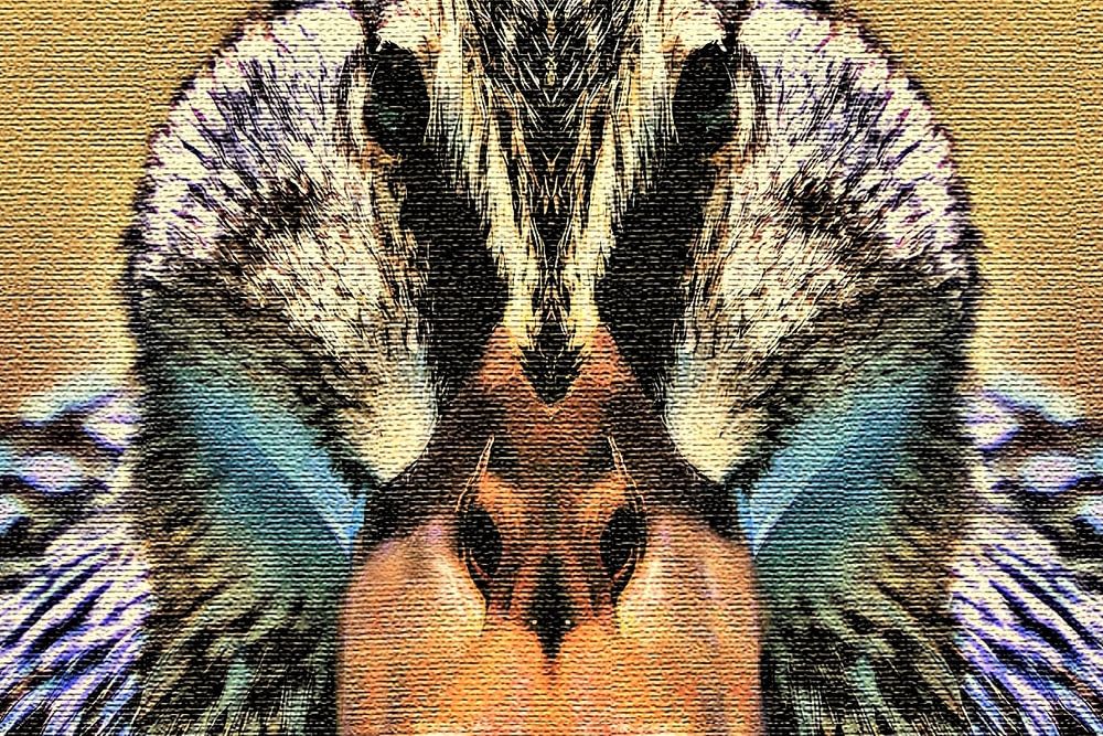 Un portrait inhabituel et amusant d'un canard. Le canard a été photographié de près en regardant droit dans l'appareil. La manipulation numérique de la photo a créé un portrait inhabituel et aliénant avec de belles couleurs chaudes et froides. Une subtile couche numérique texturée a été appliquée sur l'ensemble de l'image, donnant à l'œuvre l'aspect d'une peinture sur toile. Vous ne cesserez jamais de la regarder et elle ajoute une note joyeuse à tout intérieur.