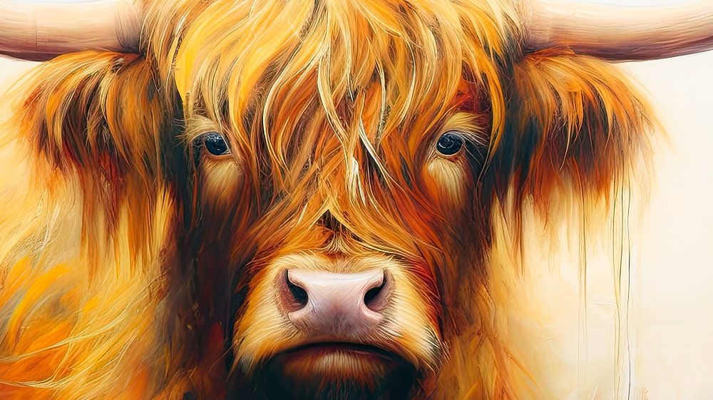 La palette de couleurs est chaude. Un hommage à cette vache primitive particulière !