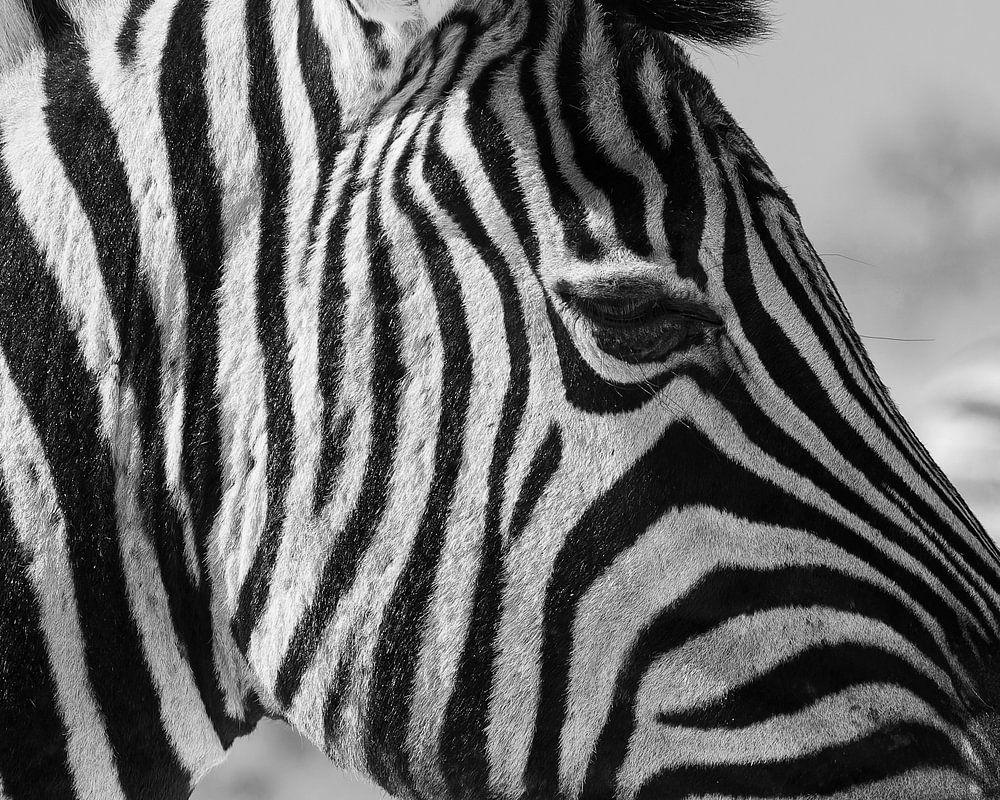 Le zèbre, bien sûr, est un animal très caractéristique de l'Afrique avec ses rayures distinctives. Une photo en noir et blanc met encore plus en valeur le motif des couleurs. Pour d'autres animaux à sabots d'Afrique, voir : http://naturebylennart.com/mammals-blog/ungulates-of-africa/.