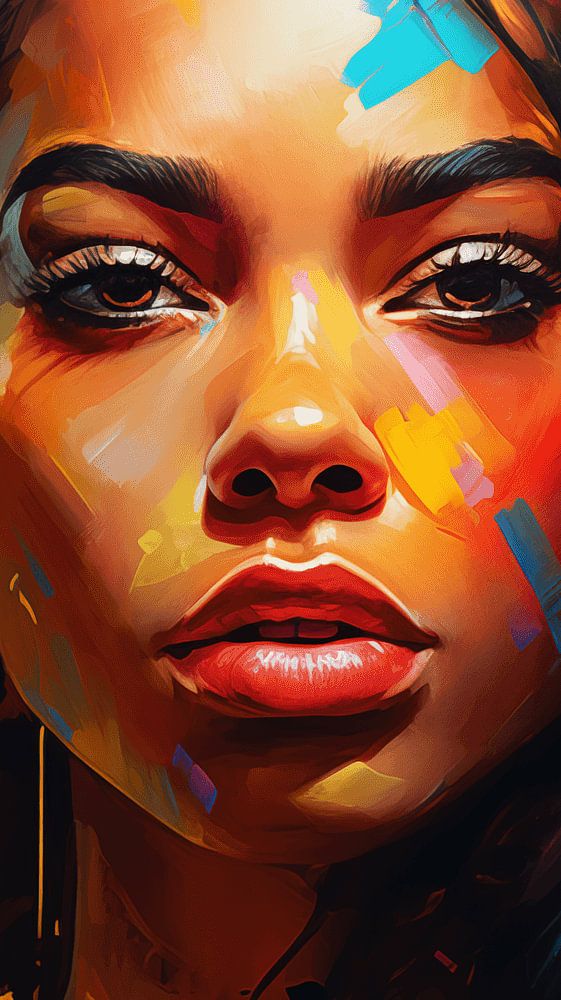 Portrait d'une femme africaine maquillée, bodypainting, design pop art, vertical