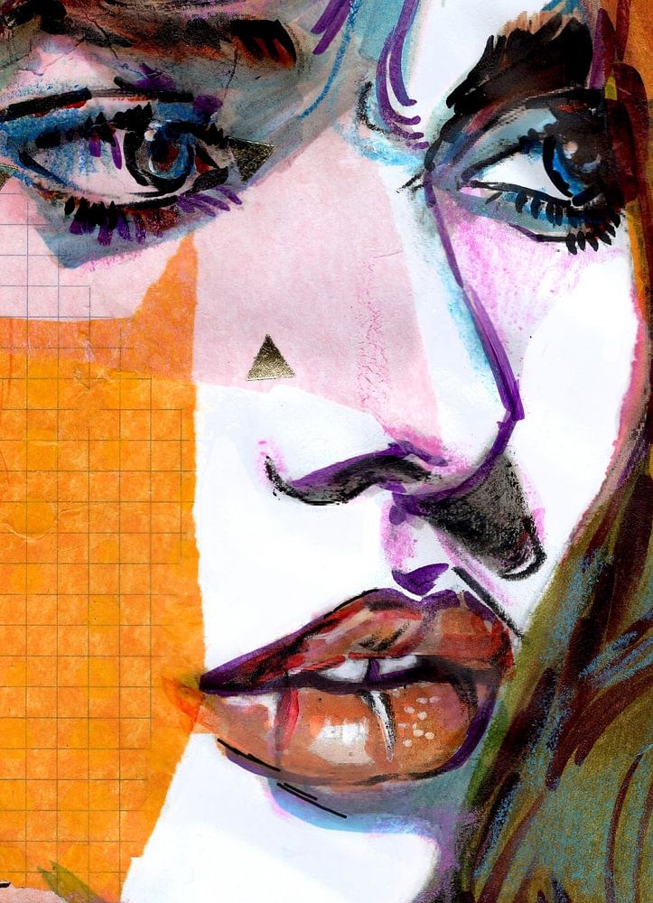 Portrait de femme dans un style urbain. Illustration originale en croquis et collage de papier.