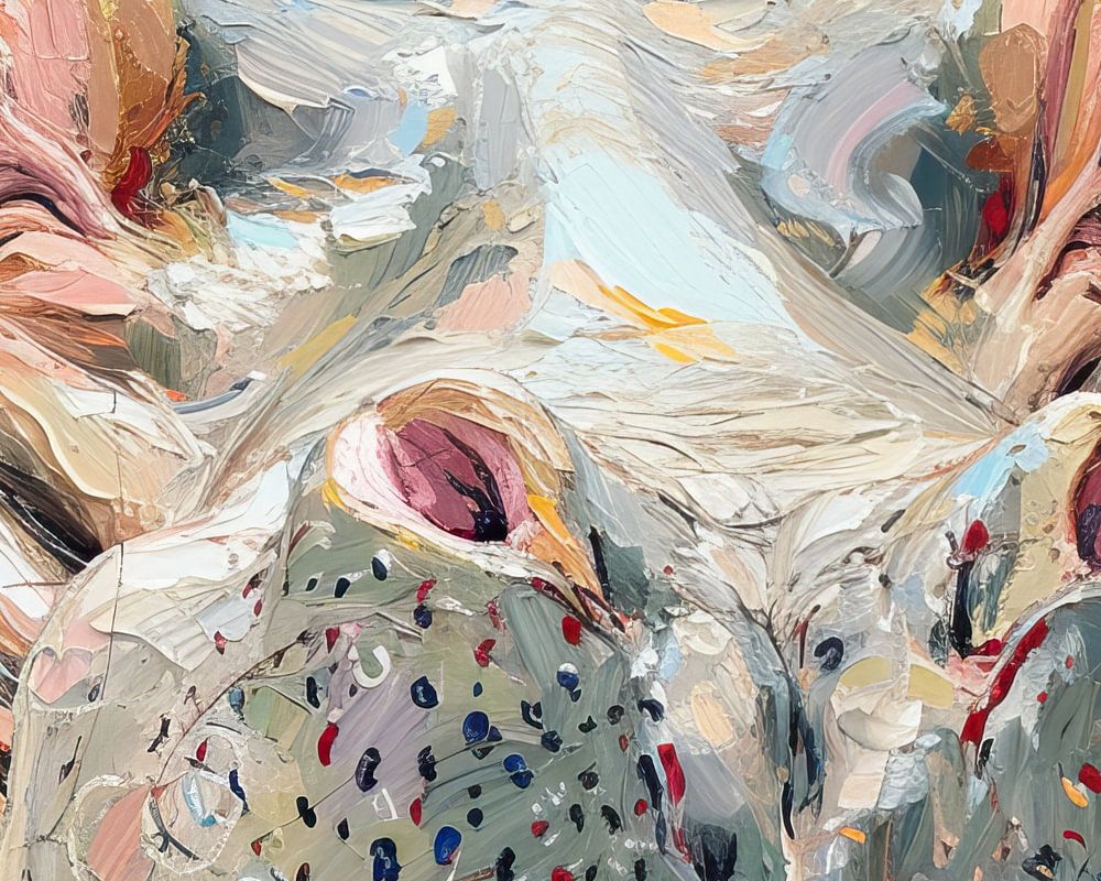 Détails : abstrait, hippopotame, portrait, art animalier, moderne, coloré, vibrant, expressif, créatif, peinture