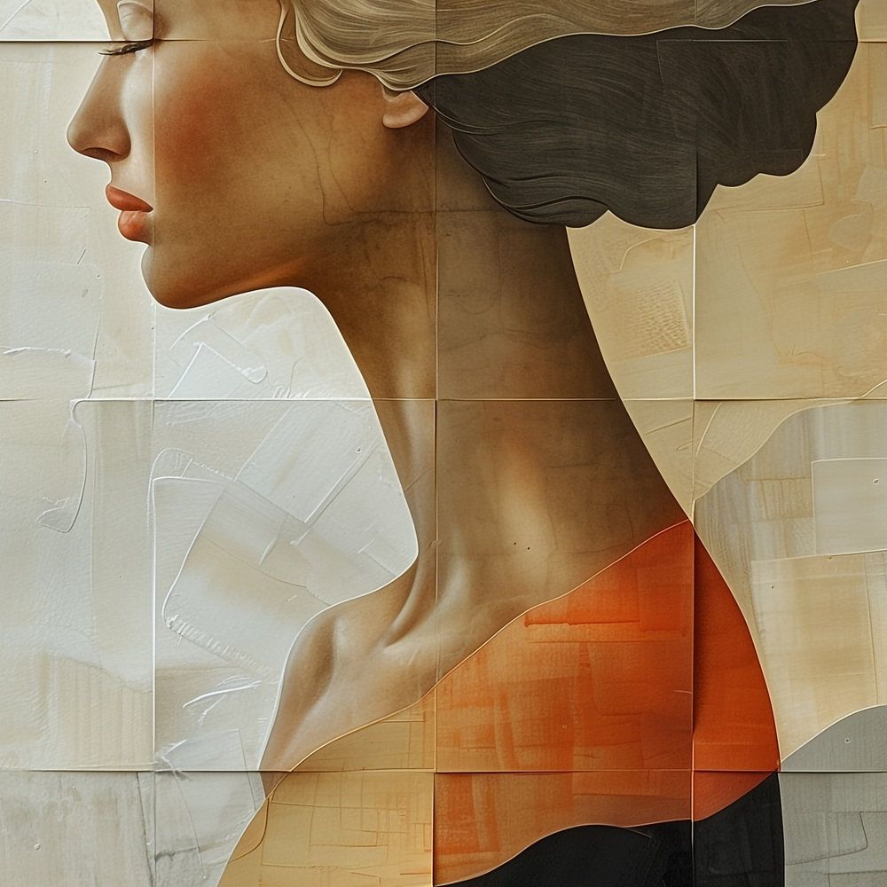Un détail remarquable est la façon dont les couleurs et les formes de l'arrière-plan se fondent subtilement dans les contours de la femme, créant une transition douce et une unité dans l'image. Ce détail, associé aux coups de pinceau raffinés et à l'équilibre entre l'ombre et la lumière, confère à l'œuvre une qualité intemporelle et intrigante.