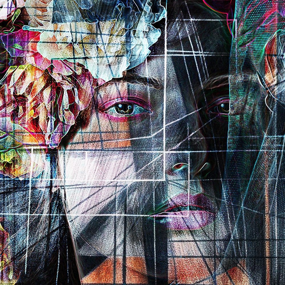 L'utilisation d'un motif de lignes colorées diverses permet de créer une œuvre d'art abstraite tout en conservant les contours clairs du portrait original.