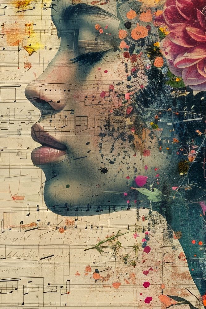 Un portrait floral expressif aux tons chauds d'orange, de rose et de jaune, associé à des notes de musique et à des effets de collage pictural. Cette œuvre apporte couleur et émotion aux intérieurs Japandi, bohèmes et romantiques, et respire l'élégance dans un salon, une chambre ou un espace de travail créatif. L'image poétique d'une femme immergée dans les fleurs et la musique invite à la paix et à l'inspiration.