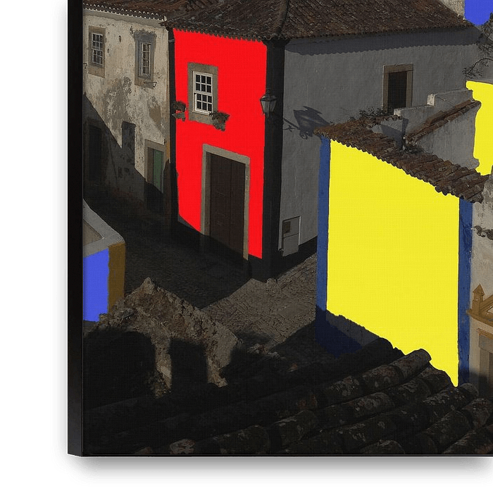 Sommige foto's zijn zo grafisch, dat ik gestimuleerd word om daar op door te werken en zo ontstond deze serie. Dit is het dorp Obidos in Portugal noord van Lissabon. Een oud ommuurd dorpje met smalle straatjes, gezellige restaurantjes, en een paar hele goede hotels.