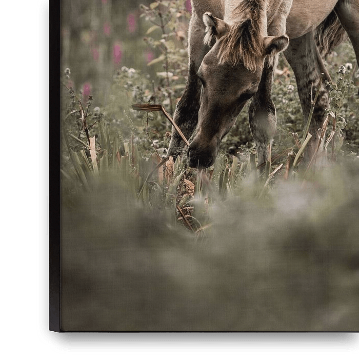 Achetez cette œuvre d'art florale Poulain broutant dans un champ de silence par Femke Ketelaar sur toile, aluminium, ArtFrame ou photographie (encadrée), impression d'art en haute qualité et tout format.