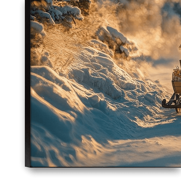 Au milieu d'un paysage hivernal de rêve, un personnage familier se promène dans la neige scintillante avec un traîneau rempli de cadeaux. Les couleurs chaudes du lever du soleil enveloppent la scène et créent un sentiment de confort et d'anticipation. Cette charmante œuvre d'art enrichit merveilleusement chaque salon et apporte une…