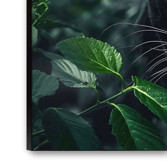 Une photo unique d'un puma dans la jungle. "Step into the Wild : Experience the Intensity of the Natural Gaze ! ?? Contemplez l'énigmatique majesté d'une panthère noire en gros plan, capturée lors d'une rencontre enchanteresse avec l'objectif. Plongez dans l'étreinte de la jungle, tandis que des feuilles mystérieuses dansent autour de cette créature fascinante. Osez vous lancer dans une aventure dans la jungle avec cette œuvre d'art remarquable - libérez l'esprit sauvage qui sommeille en vous!" ; ???