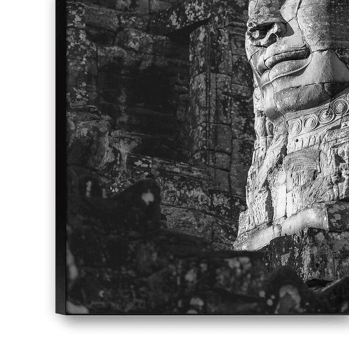Aux premières lueurs du jour, le visage du bodhisattva Lokeshvara, sculpté dans la pierre, s'éveille, comme si un souffle ancestral parcourait les murs d'Angkor Thom. Son visage, composé d'innombrables blocs et pourtant d'une harmonie parfaite, porte une sérénité qui n'a pas changé depuis des siècles. Le soleil tâtonne sur ses contours, faisant ressortir les fines lignes de son sourire et rendant presque palpable la sagesse qui repose dans son regard.
