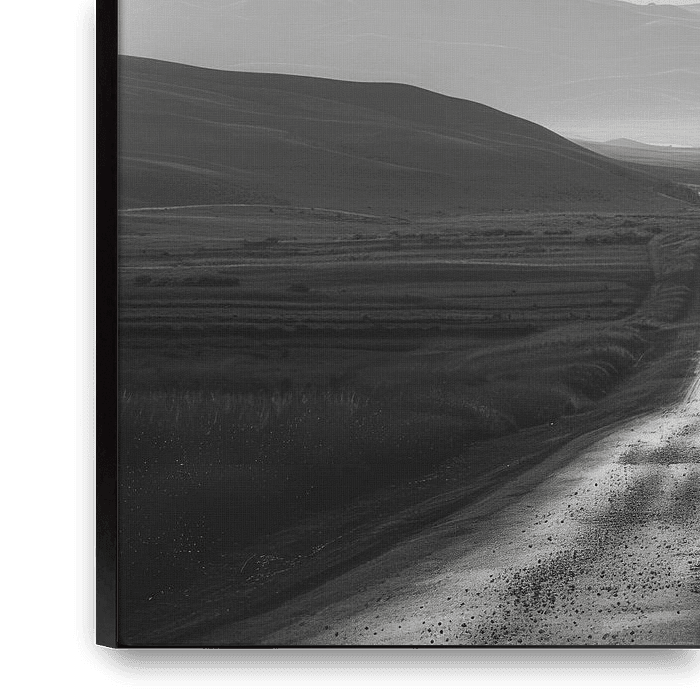 Cette photographie en noir et blanc capture la solitude silencieuse d'un randonneur sur une route sans fin. Le jeu d'ombre et de lumière renforce l'ambiance mélancolique et transmet un profond sentiment d'isolement et de réflexion. Idéal pour les amateurs d'art qui apprécient la beauté des scènes minimalistes et contemplatives. Parfait…