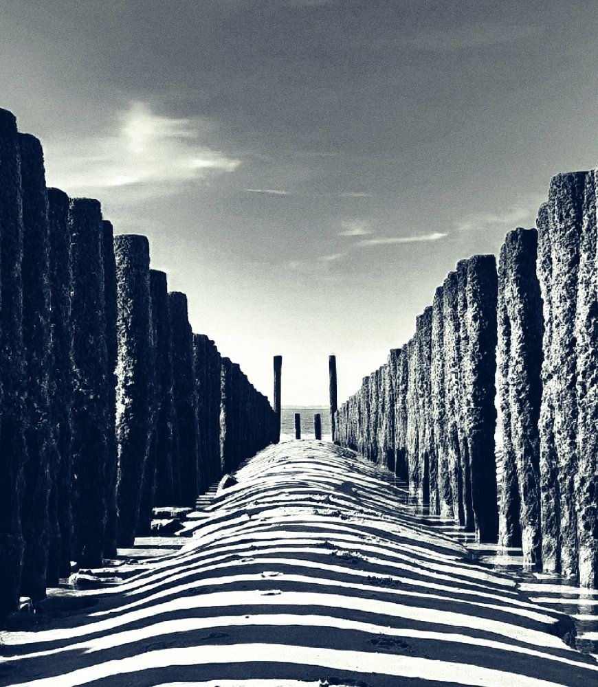Photo des têtes de pile sur la plage de Dishoek. Zélande.
