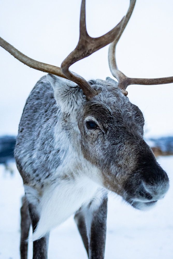 Une scène impressionnante de la culture Sami à Tromsø, en Norvège : un renne majestueux photographié de face, dont la stature imposante et les bois grandioses rendent hommage à la force et à la grâce de ces animaux emblématiques. Laissez l'énergie spirituelle de la vie sauvage nordique prendre vie sur votre mur et apportez l'enchantement de ce majestueux renne directement dans votre intérieur.