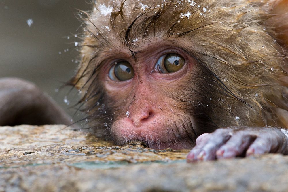 Un mignon jeune singe des neiges se repose au bord de la source chaude. Les singes des neiges sont assez compétitifs et donc très actifs et alertes. Il est donc parfois agréable et nécessaire de prendre du repos ;)