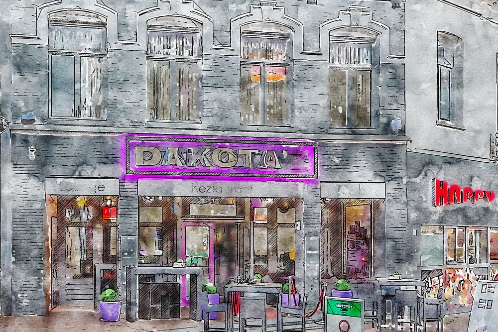 Aquarelle numérique du restaurant "Dakota'z" à Roosendaal.