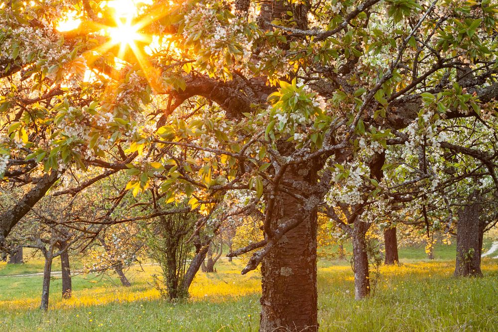 Achetez cette œuvre d'art florale Rêve de fleurs de cerisier au coucher du soleil par Jiri Viehmann sur toile, aluminium, ArtFrame ou photographie (encadrée), impression d'art en haute qualité et tout format.